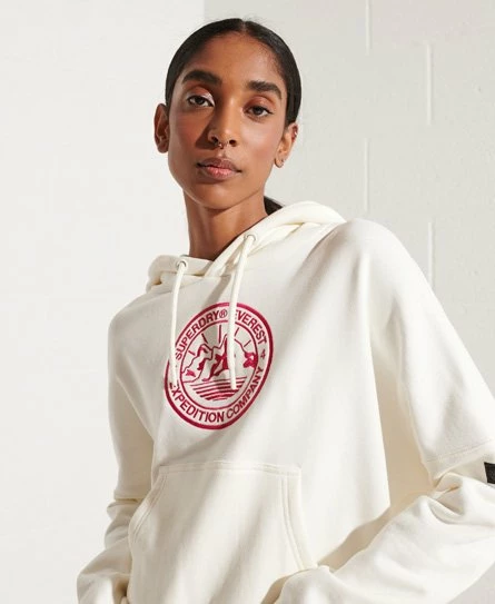 SUPERDRY Expedition Graphic Crop Hoodie Grey Slub Grindle